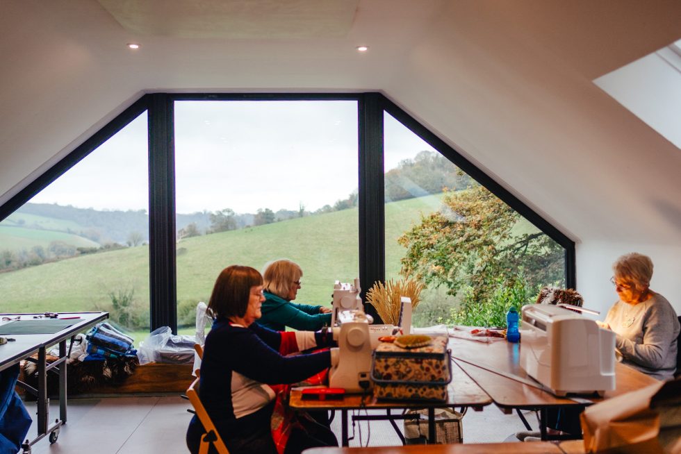 Nestled in the beautiful countryside of The South Hams in Devon, The Shippon has wonderfully luxurious accommodation, far reaching views of the River Dart and is the most perfect venue for our sewing retreat. Stunning bedrooms each with an ensuite or private bathroom, a huge sitting room with a woodburner – perfect for those wintry evenings… and hot tubs on the decking! Read more about the accommodation here.